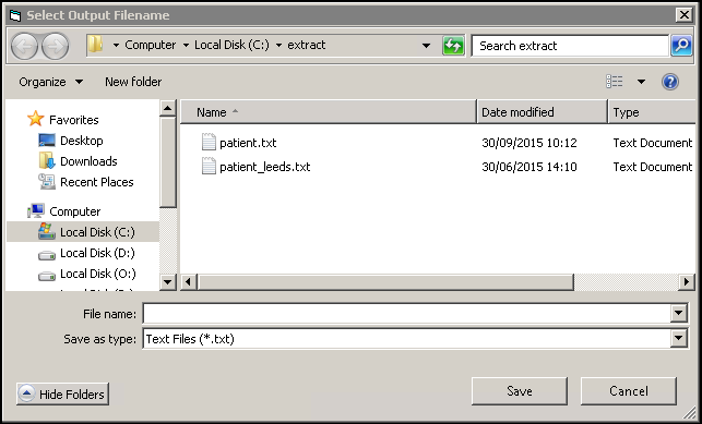 - Navigate to where you want to file saved using the file locations on the left, the default is C:\EXTRACT.