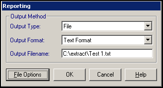 - From the Reporting screen, in Output Type select File and the Select Output Filename screen displays: