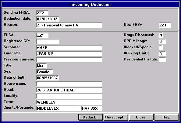 - Re-accept, if you disagree with the deduction requested, the patient can be re-accepted on the list, generating an Acceptance transaction or if the deduction is made for a change of address, which moves the patient to another TP but with the same GP, the GP can disagree and re-accept the patient to the new TP. If the patient's TP, for which they are being re-accepted, is the same as the patient's current TP, then GP Notes are mandatory. If the patient's TP is changed, then the Current TP updates.