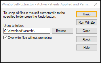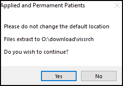 Note - Message may vary by browser. - Select Run. A pop-up message displays 'Please do not change the default location. Files extract to O:\download\vissrch. Do you wish to continue?':