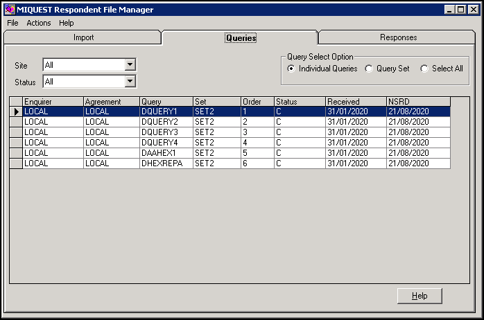 From MIQUEST, select the Queries tab to view all the imported queries currently on the system.