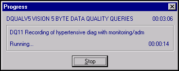 A progress bar displays while the query runs. The display refreshes as each query completes. Running queries may take some time, depending on the size of your practice data: