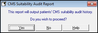 - The CMS Suitability Audit Report screen displays, select Yes to proceed: