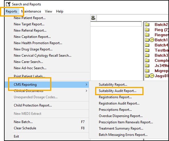From Reports, select CMSReporting - CMS Suitability Audit Report: