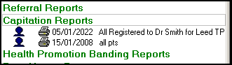 Running the Capitation Report creates a report which includes all of your registered patients by GP. They are split into the following age bands, 0 to 4, 5 to 64, 65 to 74, and 75 years onwards, see Setting up Age Bands for details on updating these ranges.