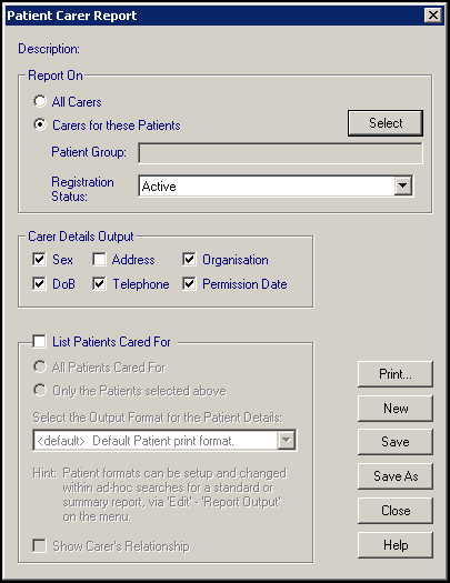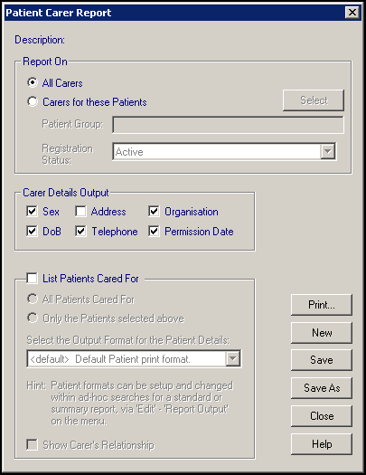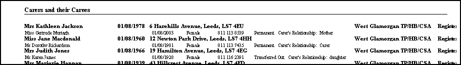 The Carers Report enables you to list either: