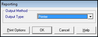 The Reporting screen displays. - Select Printer as the Output Type.