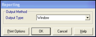 - After defining report criteria, select Print, then select Window (default) as the Output Type.