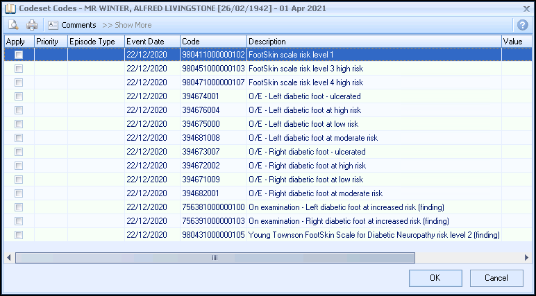 Simply select Apply for the appropriate Clinical Term and select OK to enter data: