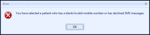 If the patient has a blank or invalid mobile number, or has declined SMS messages the following prompt displays: