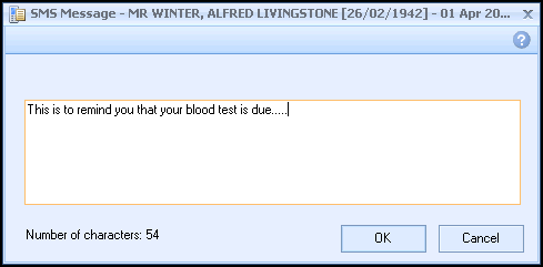 Within Vision+ you can send a free-text SMS message to an individual patient.
