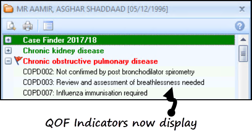 In some instances, you may exception code a patient but now see the patient and complete a QOF indicator. For example, you can exception code a patient from the COPD register but have since administered the influenza vaccination.