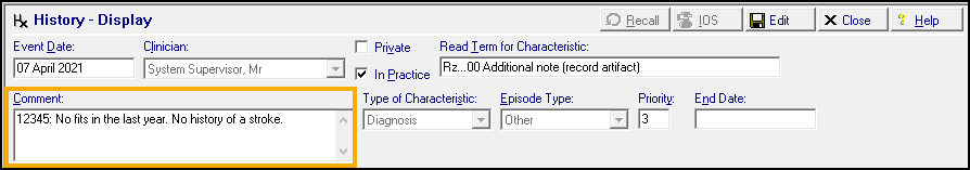 - Mail Merge Invite Status - If performing a mail merge on a QOF category that does not have a specific invite clinical term, the History Entry now includes the QOF category in the comments box.
