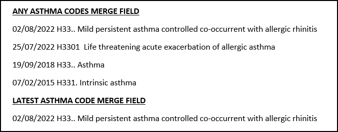 When generating mail merge documents, for example patient leaflets, care plans, referral forms, from within a Vision+ template, you can now generate multiple entries into a document, for example, multiple result values, as well as just the latest entry. Your authoring team need to build this functionality into any Vision+ templates before distributing to practices: