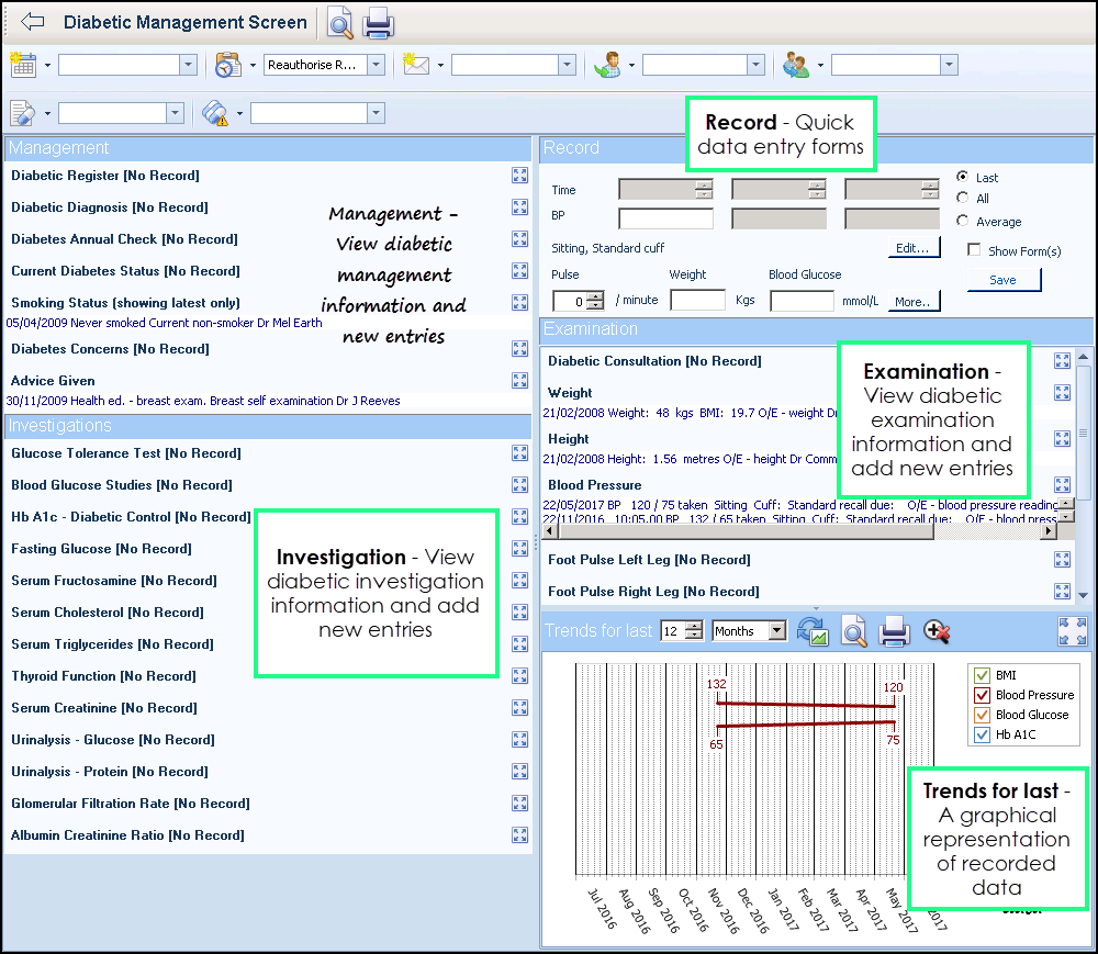 Diabetic Management Screen