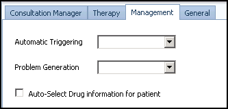 The Management tab allows you to set up profile options specific to Guidelines and Problems, these options are also currently configurable in the Consultation Manager Setup - Management tab, see Consultation Manager Setup - Management in the Consultation Manager Help Centre for further information: