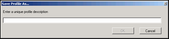 - Save As - Creates a new profile with the current settings. A unique name must be supplied for the profile.