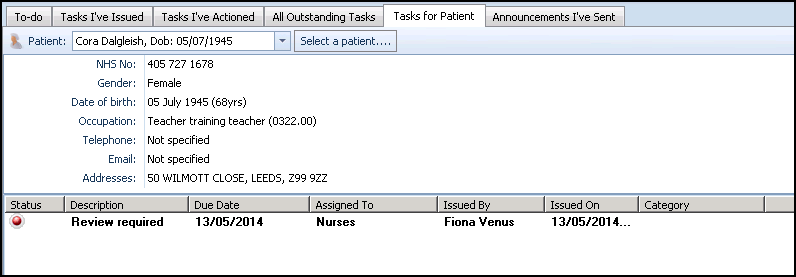 Outstanding tasks for the patient are also displayed in Consultation Manager and Appointments.