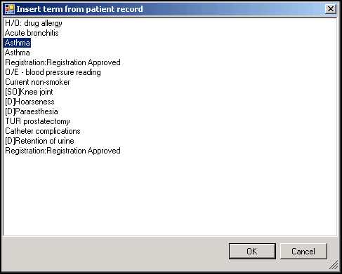 3. Insert term from patient record displays, listing entries from the patient’s: