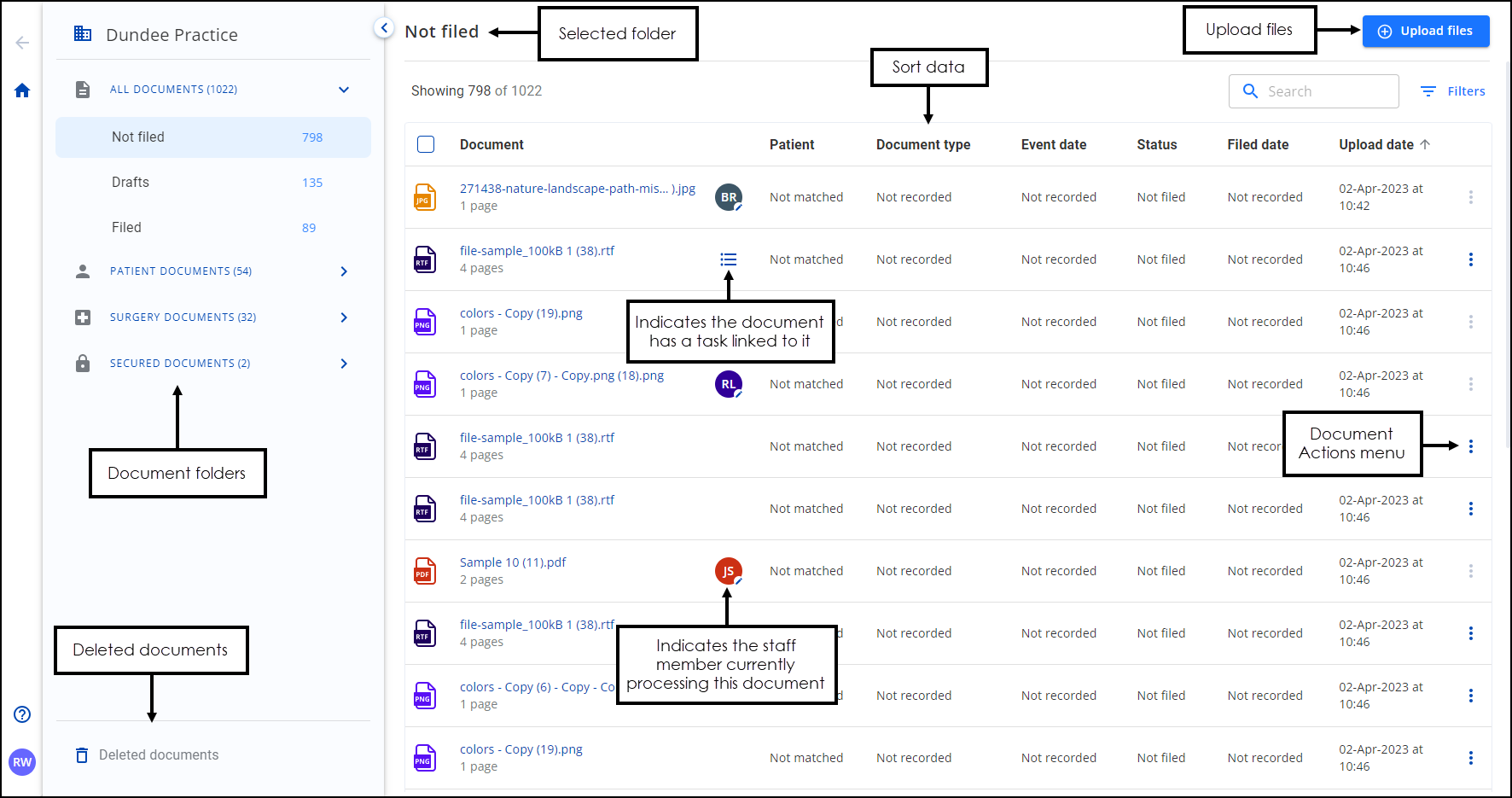 See Uploading Documents, Processing Documents, Viewing Filed Documents and Document Actions Menu for details.