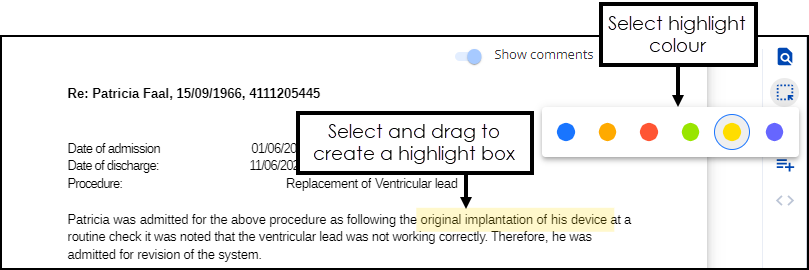, select a highlight colour option, and then select and drag the cursor to create a highlight box: