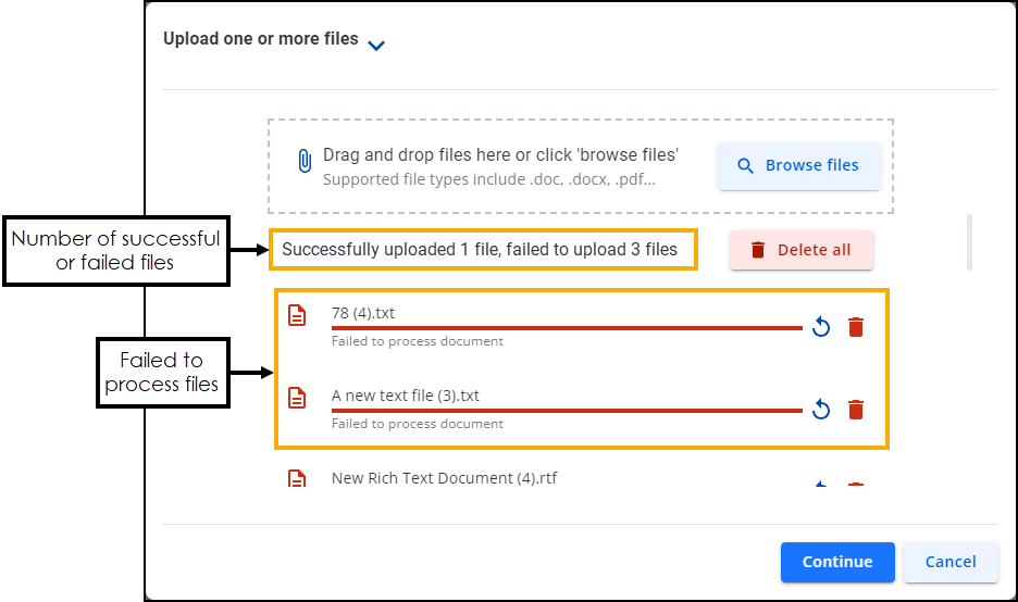 Upload Failures - You are now notified of upload failures when uploading documents to DocHub: