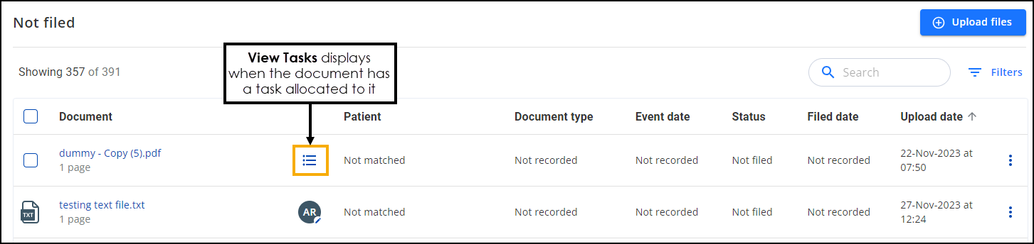 Tasks Indicator - When viewing a list of documents, an indicator displays to highlight documents that have been through the workflow process, for example, a task has been created: