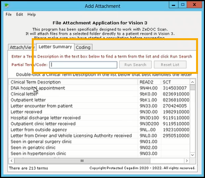 Optionally, you can now summarise the document. From Add Attachment select the Letter Summary tab, search for and select the required clinical term: