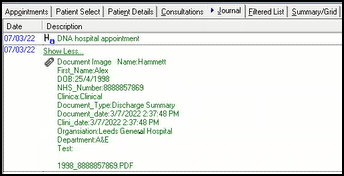 Next, from Add Attachment, right click on the same document and select Attach to Vision. An entry is added to the patient record with all the related metadata: