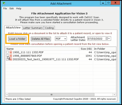 The Add Attachment screen displays, select Load a folder and navigate to the folder containing your scanned documents: