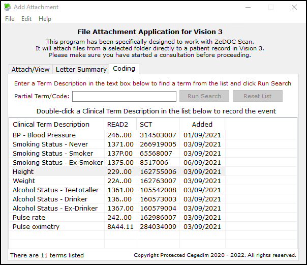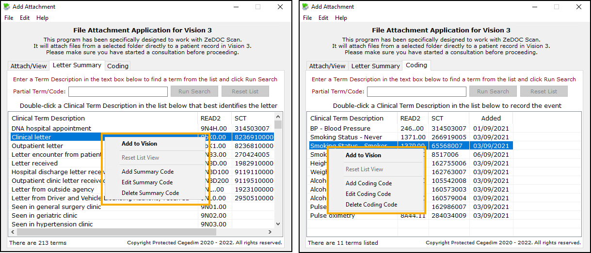 Add to Vision - To add the highlighted Description Term to the patient record.