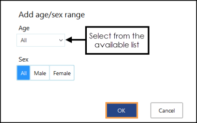 Training Tip - The top right corner includes a link to Drug Information, see Viewing Drug Information for details. - Select the Age/sex ranges Plus