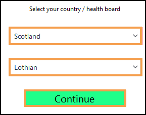 2. The first time you use FMT, you must select your Country and Health Board/Parent Organisation from the available lists.