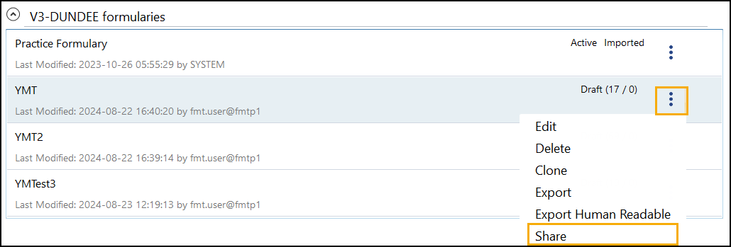 1. From the Formulary Management screen, From the Formulary Management screen, select Options - Share.