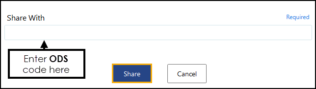 2. The Share With list displays, any practices you already share this formulary with display by ODS code.