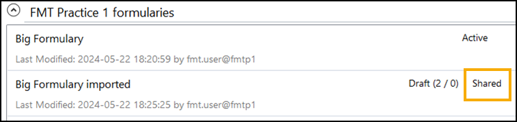 The formulary now displays in the receiving practices Formulary List in a new section containing your practice's name.