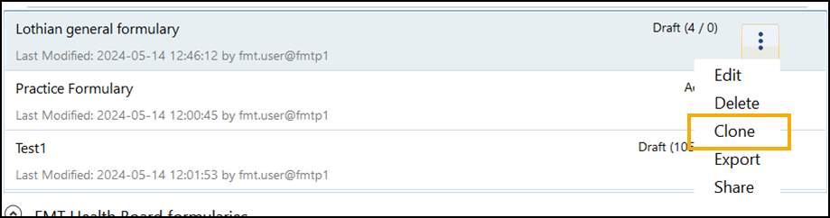 Clone it - This creates a copy of the parent organisation formulary. This removes any link to the original formulary meaning you must maintain the formulary going forwards, for example, you could clone a Health Board formulary, and then add your own changes.