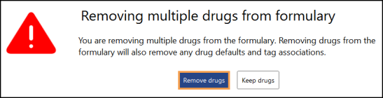 - Select Remove from Formulary and, if multiple items are selected, a 'Removing multiple drugs from formulary' notification displays, select Remove drug(s) to continue.