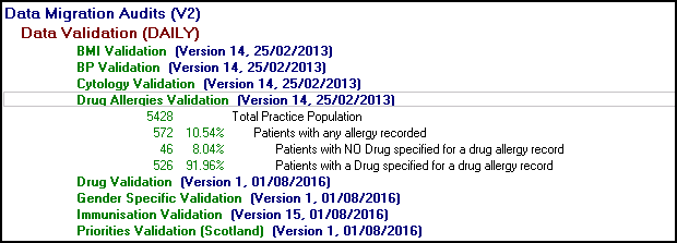 Allergies and Sensitivities - Check all allergies and sensitivities are up to date. There is a Clinical Audit under Data Migration - Drug Allergies Validation which lists patients with drug allergies without a specified drug, these can be mapped after Go Live: