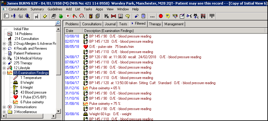 - Examination Entries - Ensure values are in the relevant places, for example, height, weight, blood pressure: