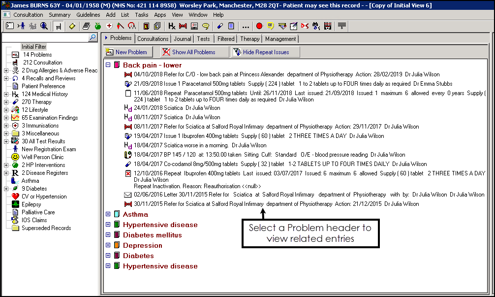 Problems - Check the Problems are accurate and are linking to consultations/medication as appropriate: