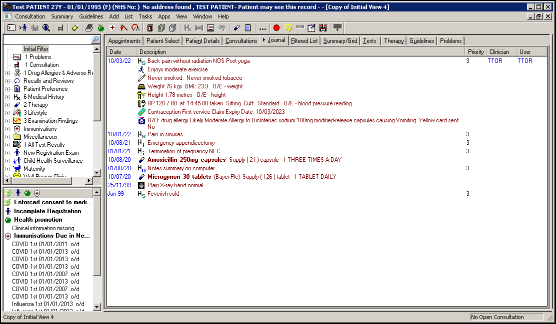Acute Therapy items - Add a few acute medication entries, see Adding and Printing an Acute Prescription in the Consultation Manager Help Centre for details.