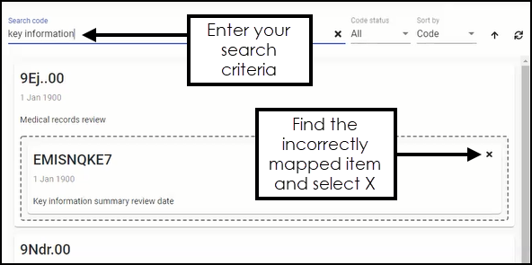 If you need to remove a mapping, for example, an EMIS item may have been mapped to the wrong Vision 3 term, you can remove it.