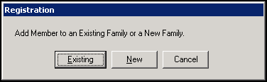 and the 'Add Member to an Existing Family or a New Family' message displays: