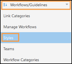- In the Administration section, select the Workflow/Guidelines section and choose Styles from the drop-down list.