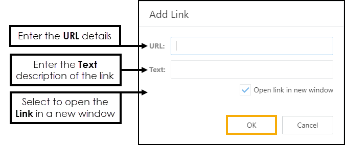 Select the Open Link in new window checkbox, to display the link in a new window.