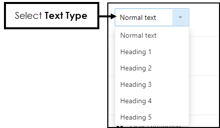 Choose from Heading 1, Heading 2, Heading 3, Heading 4, Heading 5 or Normal text.