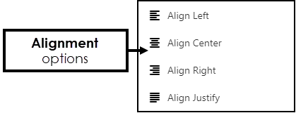Choose from Align Left, Align Centre, Align Right, and Align Justify.
