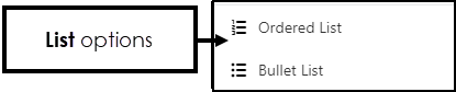 Choose from Ordered List (numeric) or Bullet List.