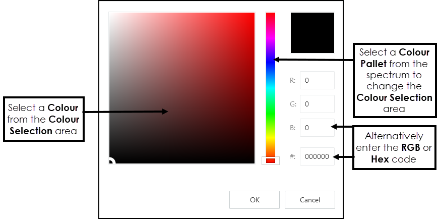 .- Select from the Colour Selection area, to change the available colours select from the Colour Pallet on the right.